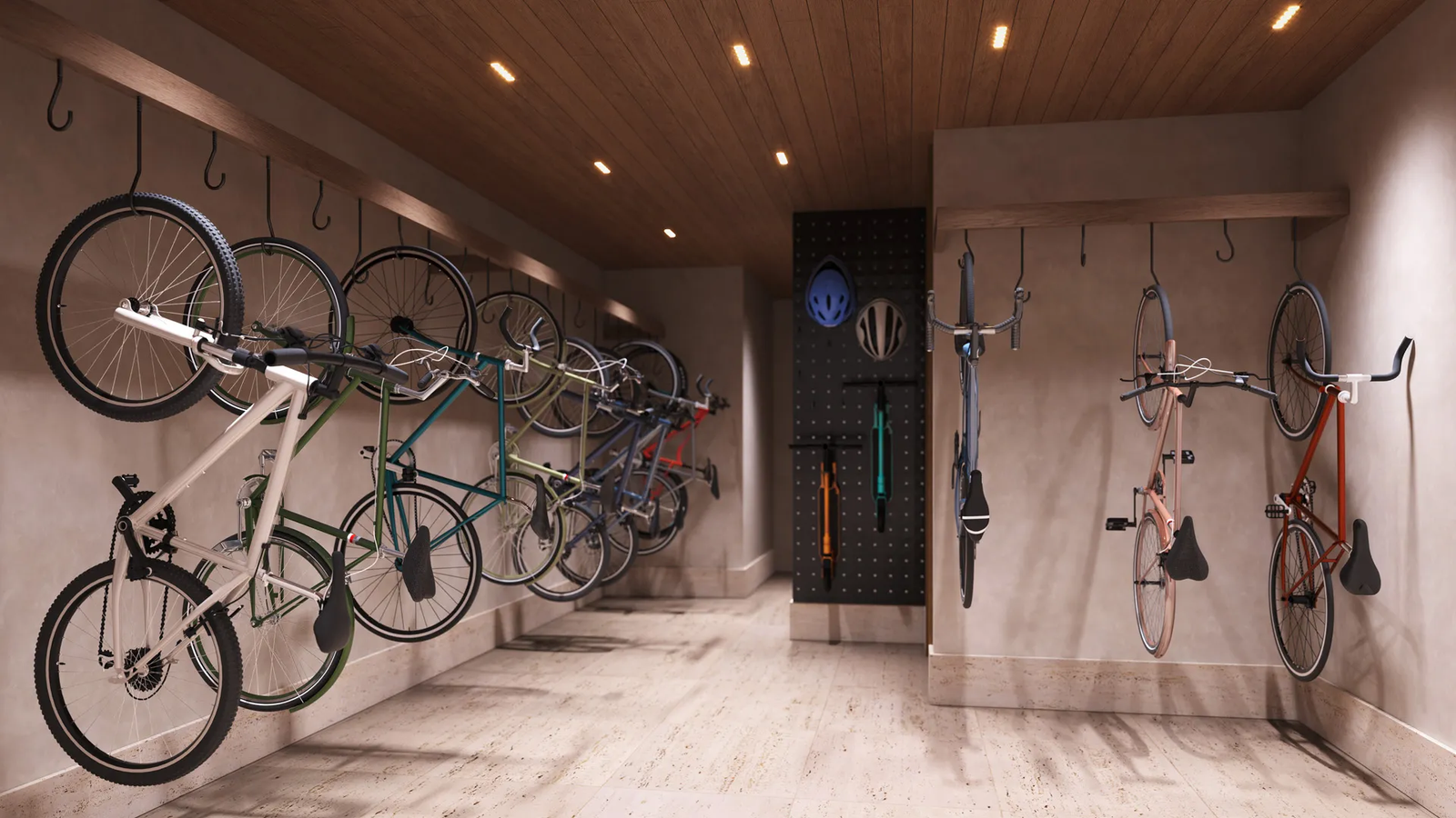 Além do lazer no topo, o térreo organiza as facilidades que economizam tempo: coworking para reuniões e foco, minimercado para compras rápidas, lavanderia coletiva que libera área útil do apartamento, bicicletário, maleiro e espaço delivery para recebimentos com segurança. O conjunto conversa com mobilidade a pé, rotina de trabalho híbrida e vida urbana intensa — exatamente o que se busca em um endereço como a Rua Dias Ferreira.