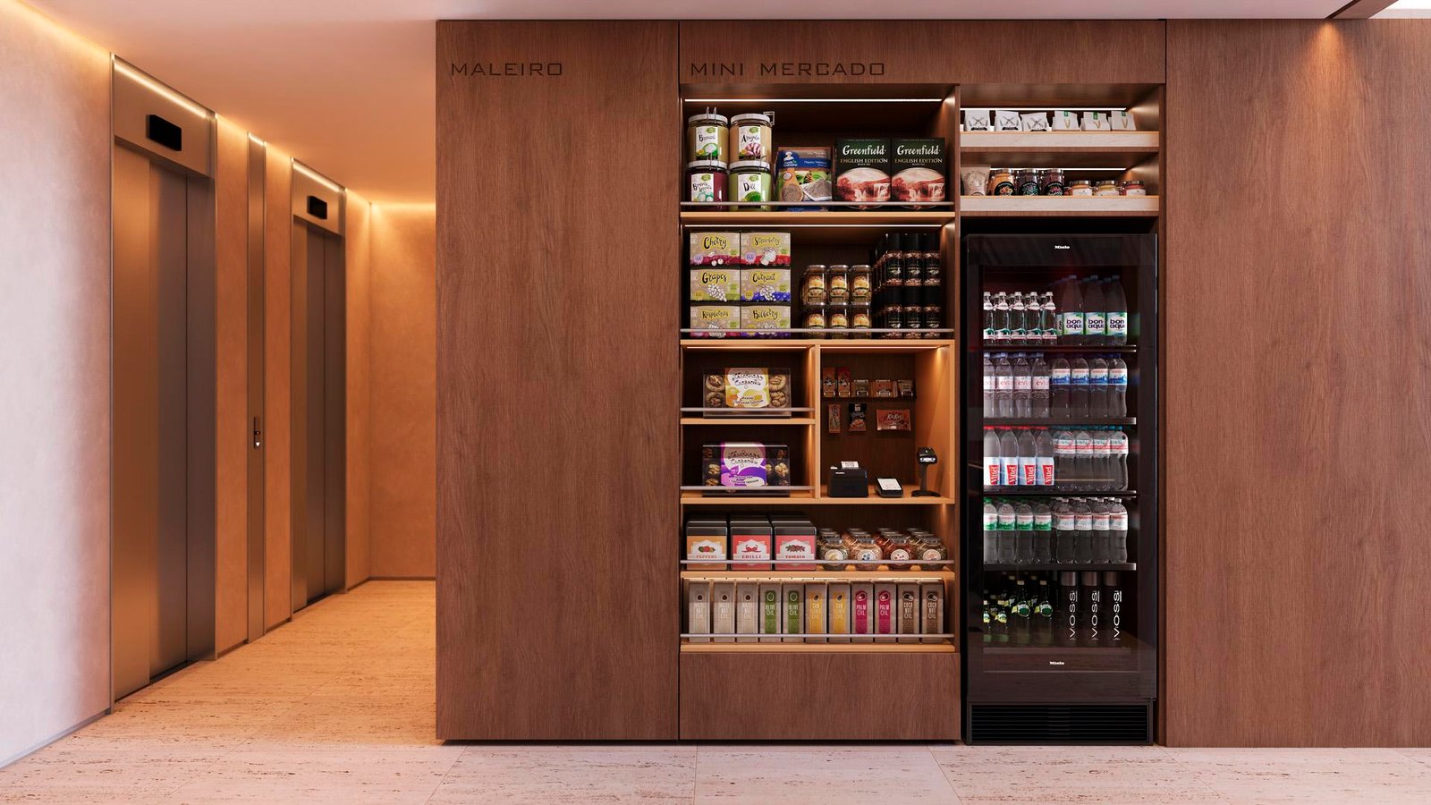 Facilidades do dia a dia no térreo: coworking, minimercado, lavanderia e espaço delivery.