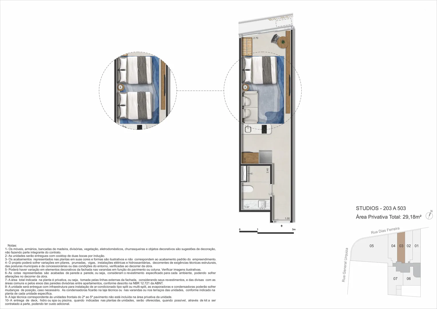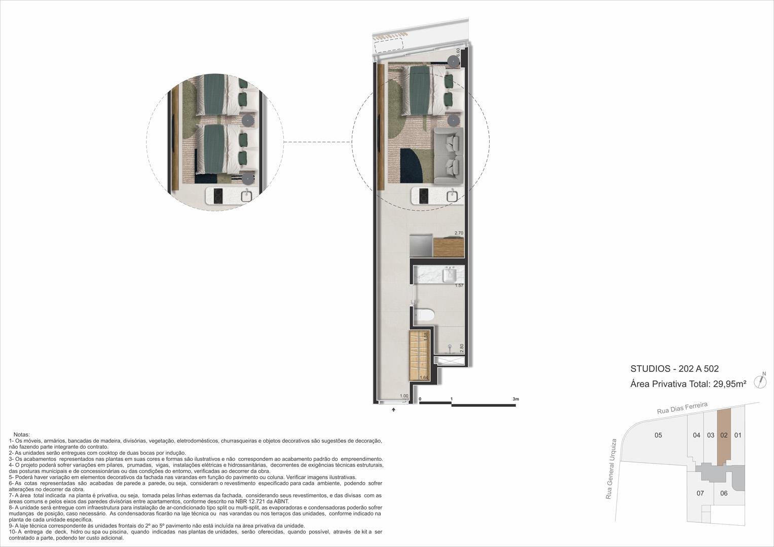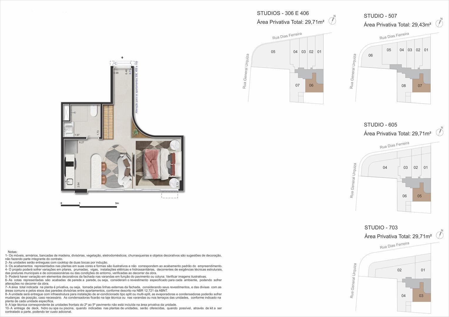 Dias Ferreira Leblon Studios: plantas e metragens (29–112 m²) para perfis distintos