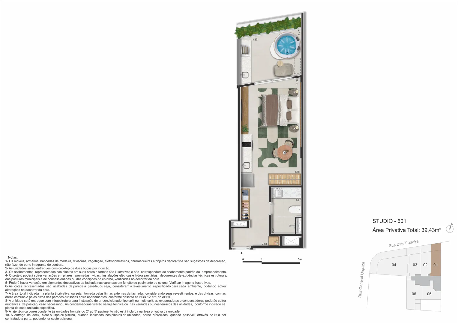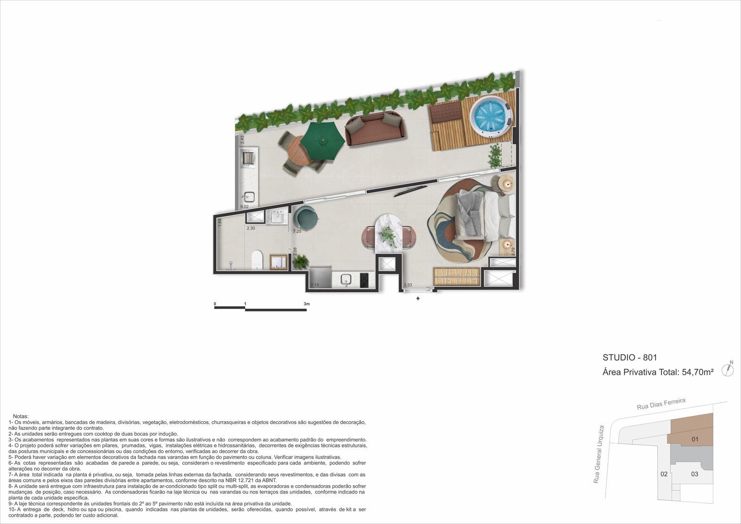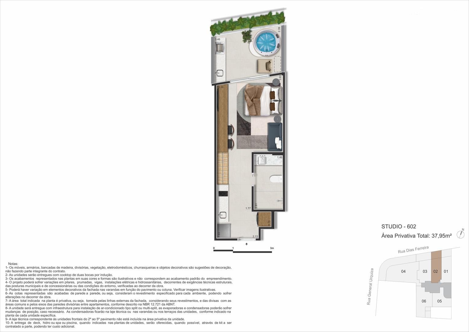 Com proposta elegante e prática, o empreendimento reúne studios, double suites, gardens e coberturas com plantas enxutas e inteligentes, concebidas para aproveitar cada metro com luz natural e integrações que ampliam a percepção de espaço. O lazer de topo oferece piscina no rooftop, spa/sauna, academia, área gourmet e coworking, enquanto facilidades como minimercado, lavanderia e bicicletário colocam a rotina no piloto automático — tudo em um único endereço, Rua Dias Ferreira, 618.