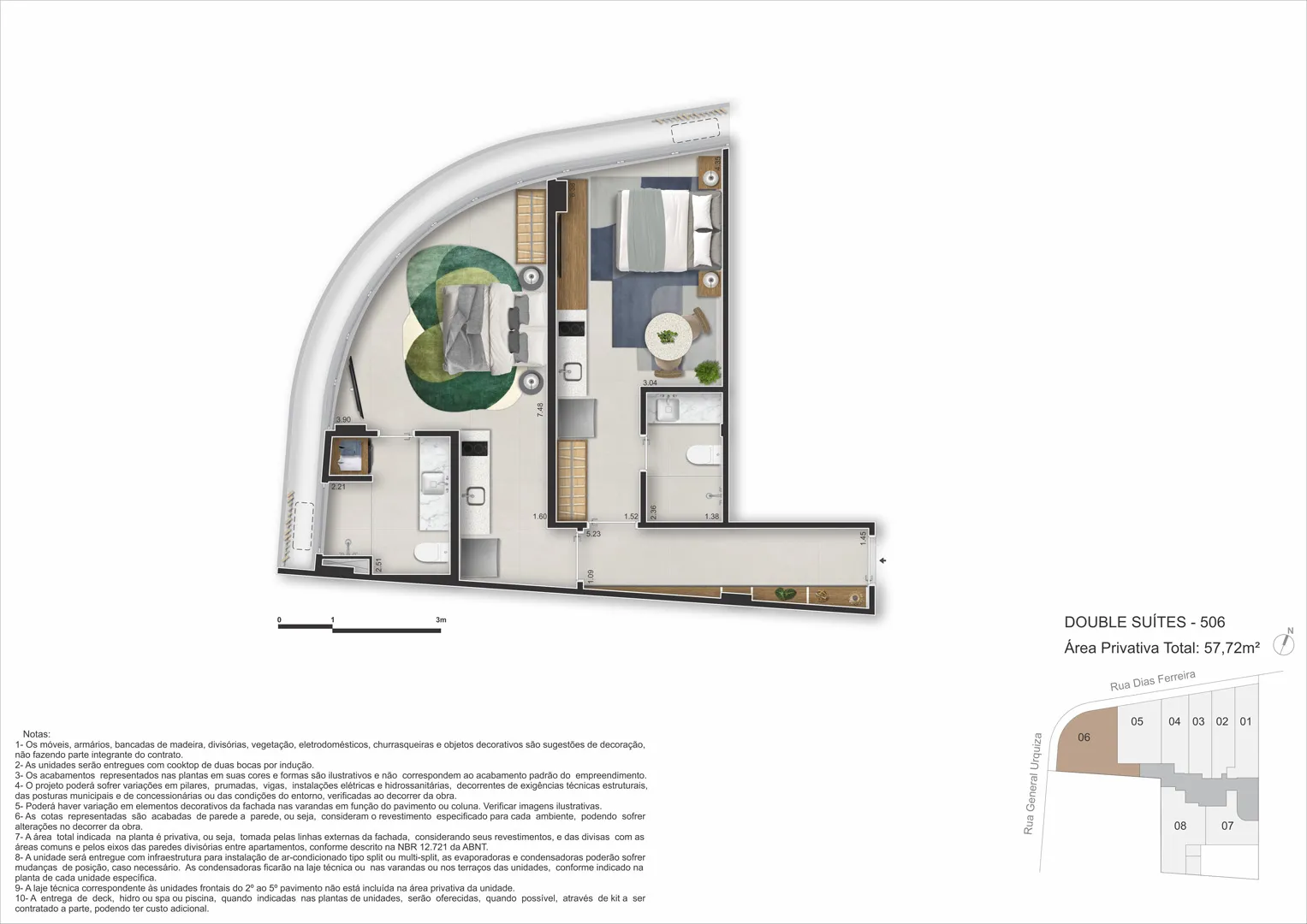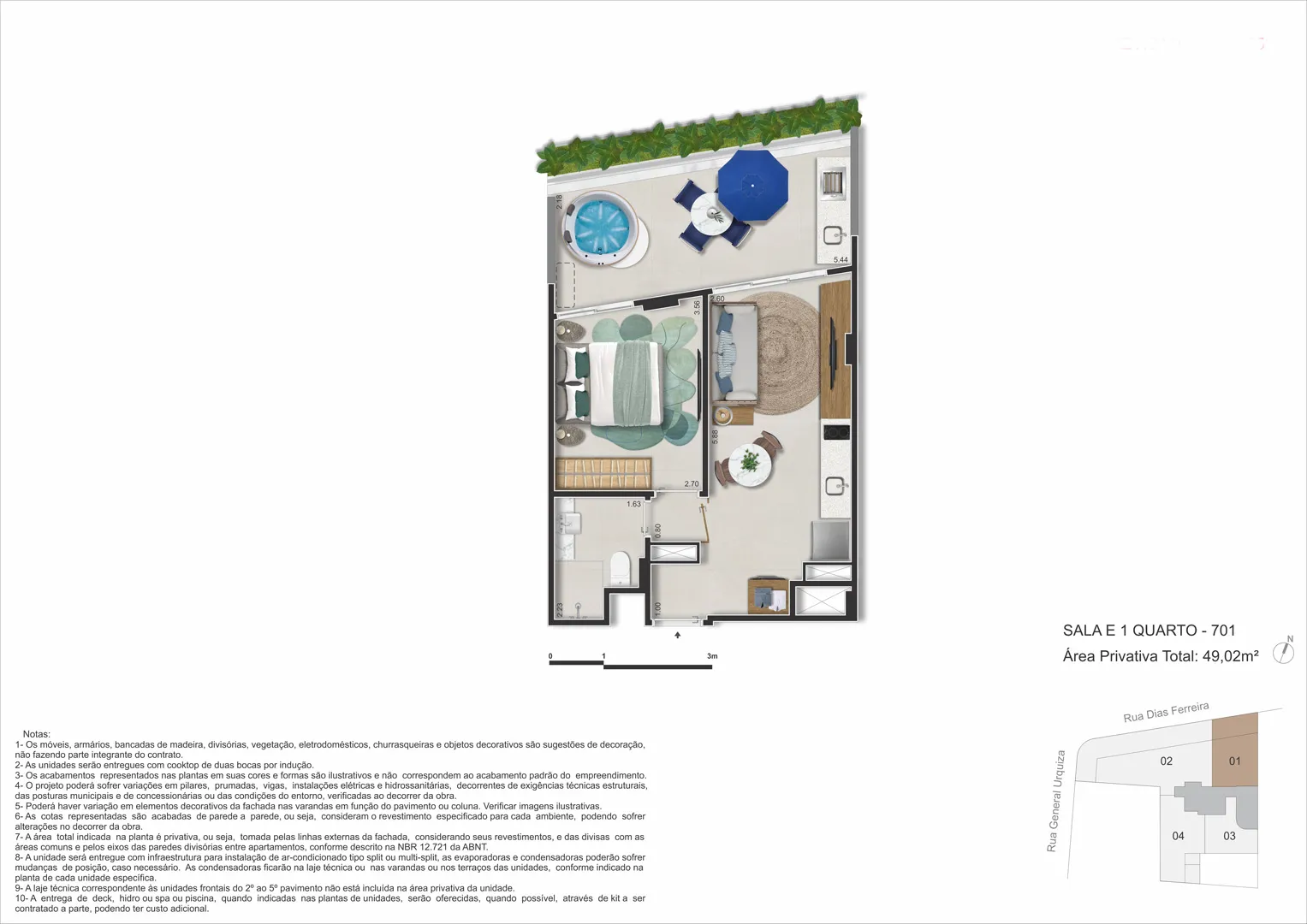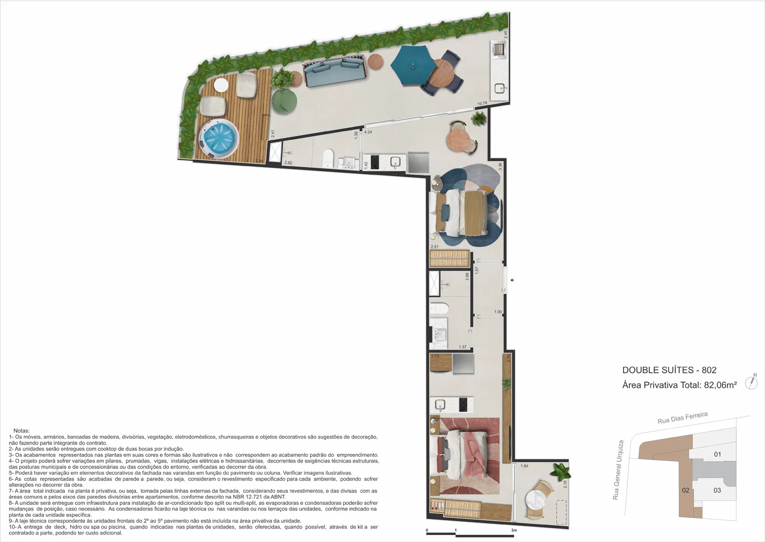 Com proposta elegante e prática, o empreendimento reúne studios, double suites, gardens e coberturas com plantas enxutas e inteligentes, concebidas para aproveitar cada metro com luz natural e integrações que ampliam a percepção de espaço. O lazer de topo oferece piscina no rooftop, spa/sauna, academia, área gourmet e coworking, enquanto facilidades como minimercado, lavanderia e bicicletário colocam a rotina no piloto automático — tudo em um único endereço, Rua Dias Ferreira, 618.
