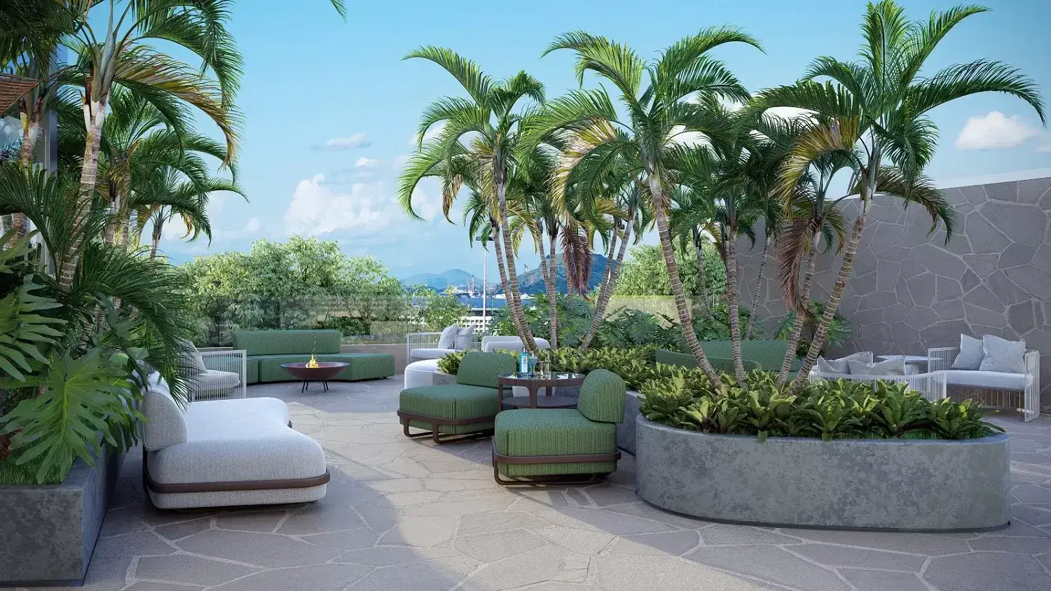 Studios garden com amplos terraços privativos.