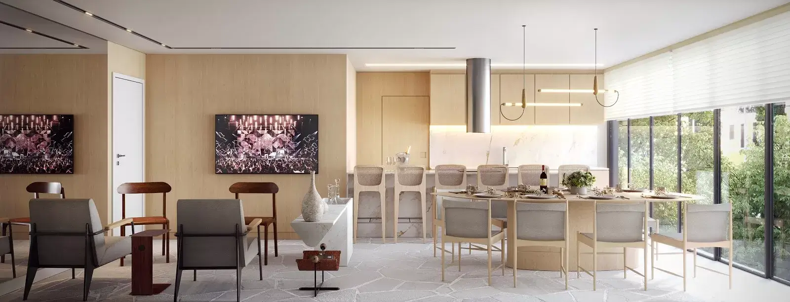 Outro fator determinante para o destaque do Glória Del Art Co Living é sua ampla oferta de área de lazer e serviços condominiais. O projeto contempla espaços pensados para o bem-estar e a socialização dos moradores, como academia moderna, piscina de borda infinita, wine bar, espaço gourmet, coworking, cinema, lounge externo e churrasqueira. Essa variedade de ambientes garante uma rotina mais agradável e promove o convívio em comunidade com praticidade e sofisticação.