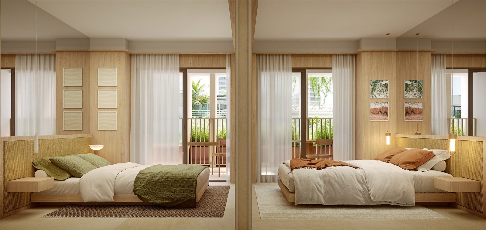 Serão studios e apartamentos de até 77 m², alguns com vaga de garagem, acabamento de alto padrão e uma atmosfera que privilegia luz natural, conforto e privacidade.