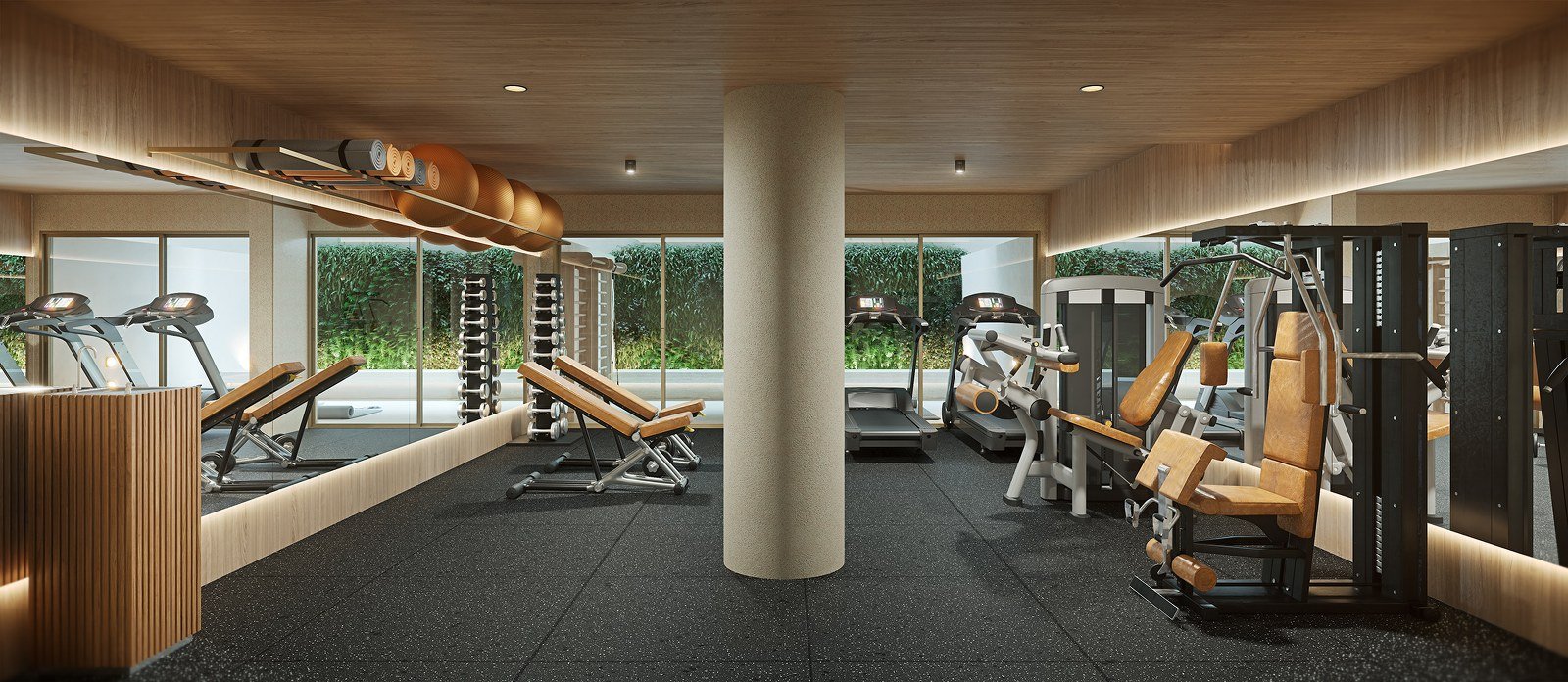 O pavimento térreo reúne academia, coworking, minimercado, lavanderia, bicicletário e pranchário. Essa infraestrutura agrega praticidade ao dia a dia, possibilitando treinos, trabalho remoto, compras de última hora e apoio para esportes de orla. Tudo foi pensado para que cada recurso esteja sempre à mão, sem comprometer o requinte.