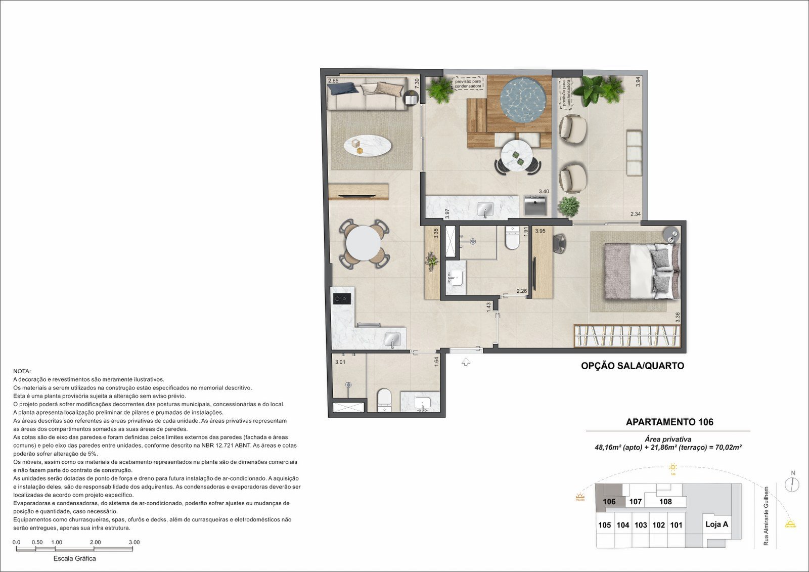 O mix contempla studios, double suítes, apartamentos de um quarto, gardens com área externa privativa e unidades com terraços amplos — combinando sofisticação e funcionalidade. Para quem gosta de receber, há opções com varandas gourmet integradas à área social; já para rotinas mais dinâmicas, as plantas priorizam fluxos intuitivos e mobiliário planejado. A flexibilidade do projeto atende desde o comprador em busca do primeiro imóvel de alto padrão até investidores que valorizam liquidez e ocupação qualificada. Alterações de layout são possíveis dentro das diretrizes técnicas e do memorial/RI, preservando estrutura, prazos e garantias.