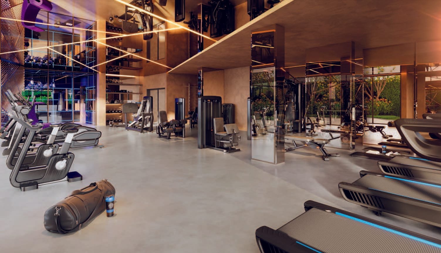 Academia moderna dentro do condomínio, promovendo um estilo de vida saudável e praticidade para se exercitar.