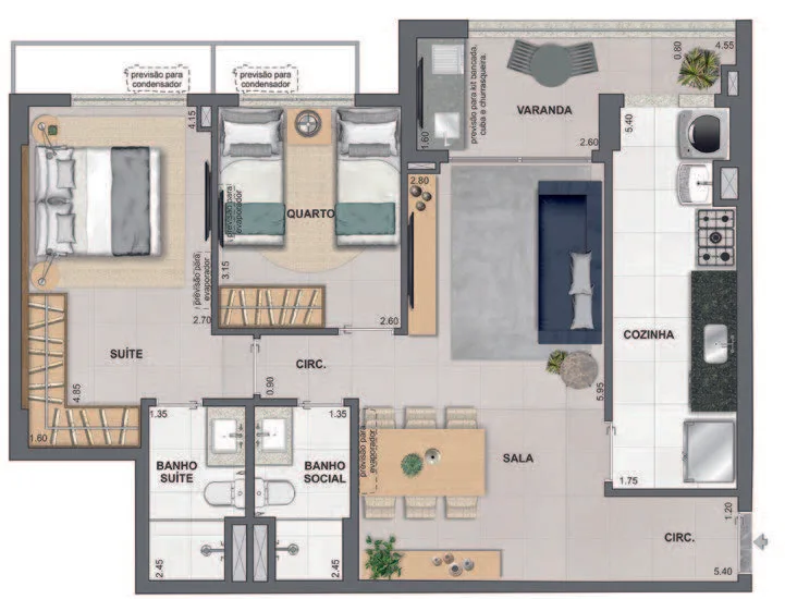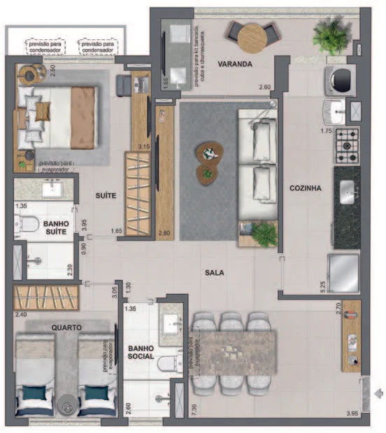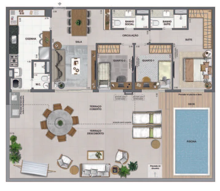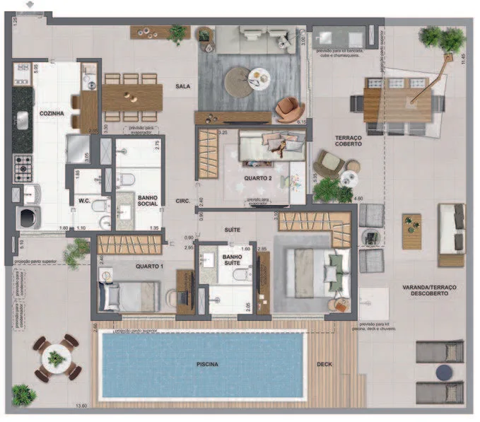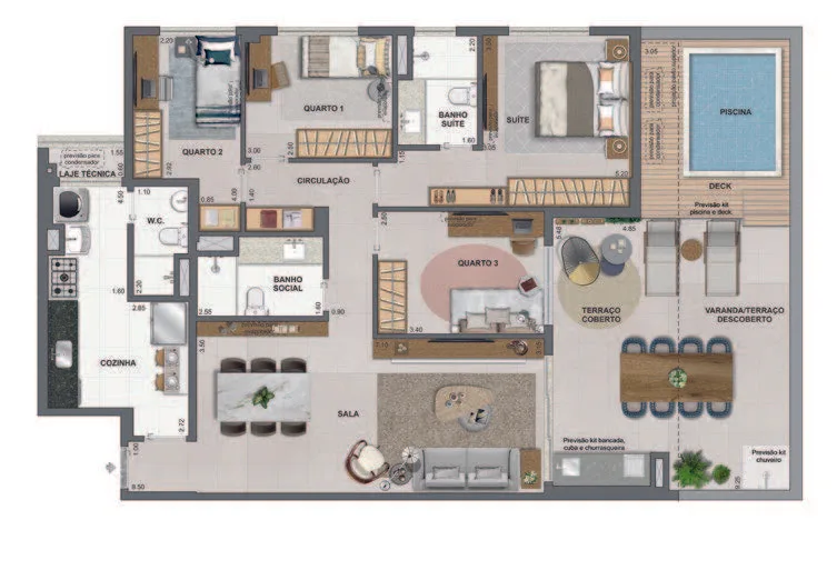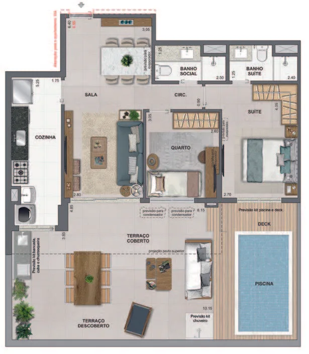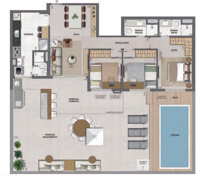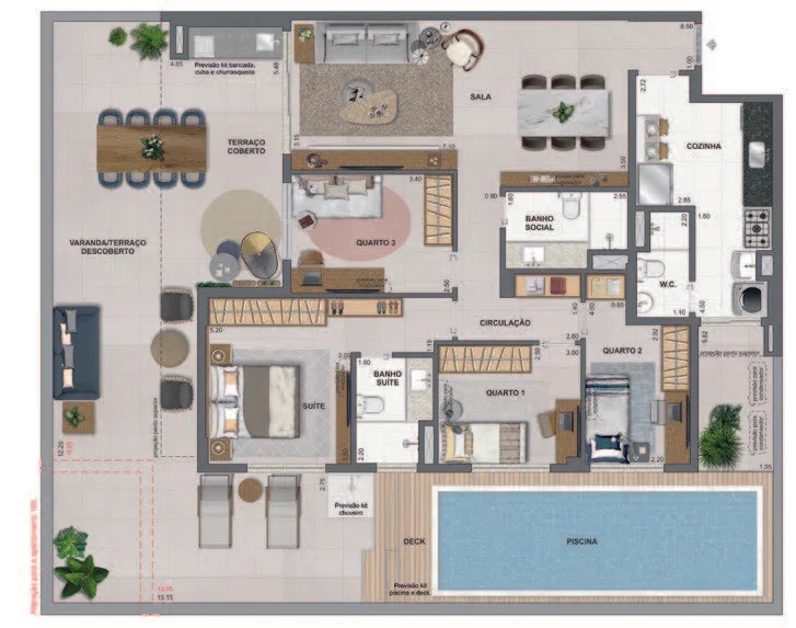 Infraestrutura de Lazer Completa: Espera-se que o condomínio inclua espaços de lazer e bem-estar, como áreas gourmet, academia equipada, piscina, entre outros.
