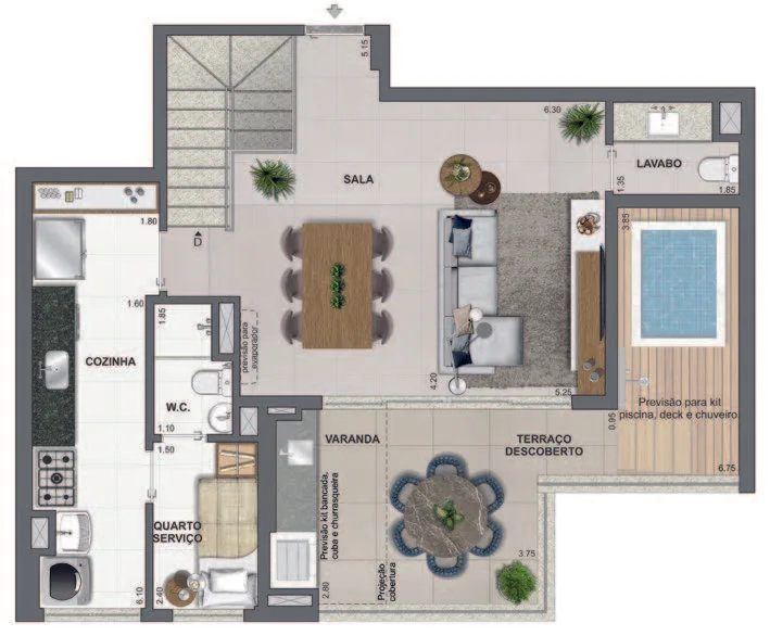 Área Gourmet: Experimente a culinária em um ambiente elegante e propício a momentos inesquecíveis.