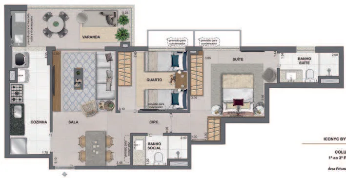 Os apartamentos no Iconyc By Yoo apresentam designs modernos e são disponibilizados em diversas metragens, que variam de espaços compactos a amplos. Eles são projetados para proporcionar conforto, luxo e praticidade, com opções de personalização para atender às preferências individuais dos moradores.