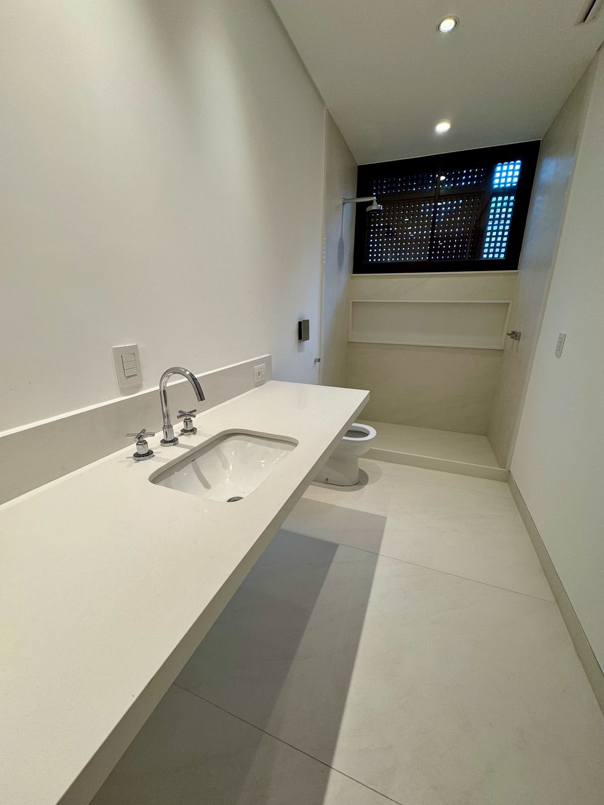 Além do design interno, o projeto incorpora elementos essenciais para a vida contemporânea, como infraestrutura para automação residencial, sistemas de climatização, e soluções tecnológicas para iluminação, som e segurança. Tudo isso sem comprometer a estética geral do projeto, que valoriza o estilo clean e moderno, com linhas minimalistas e materiais naturais, em perfeita harmonia com o paisagismo assinado pelo renomado escritório Burle Marx.