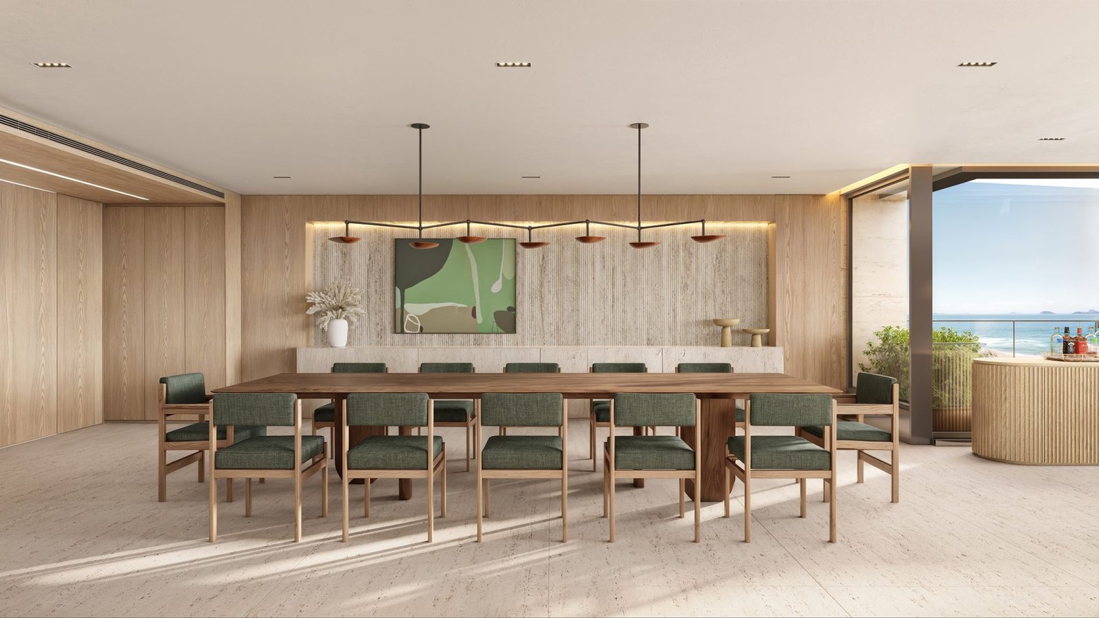 Sala de reuniões com vista para o mar, ideal para home office ou encontros executivos