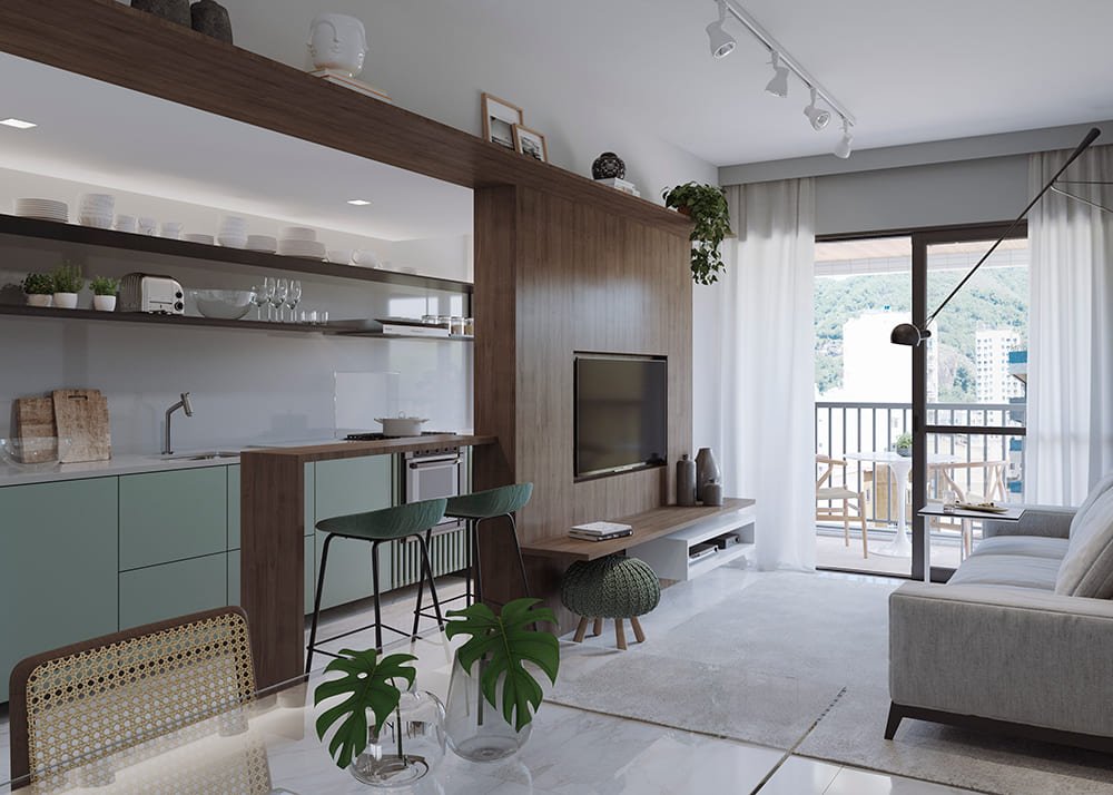 Além da metragem superior, as unidades Garden do One Tijuca também contam com 1 vaga na garagem e a opção de ampliar a sala com cozinha integrada ou fechada, garantindo flexibilidade no uso dos ambientes e adaptabilidade a diferentes estilos de vida. Isso permite uma configuração mais personalizada de acordo com as necessidades de cada morador.