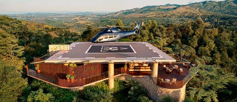 Heliponto de Alto Padrão: Viagem rápida e prática com um helicóptero de última geração, disponível para os moradores.