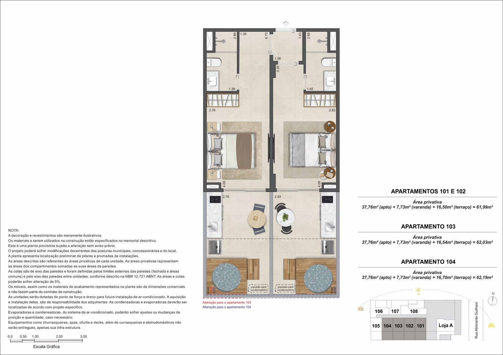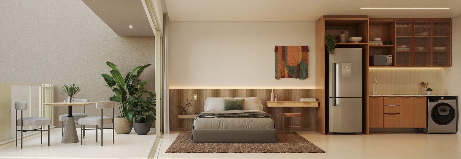 Unidades modernas e versáteis (studios, gardens, double studios e coberturas duplex)