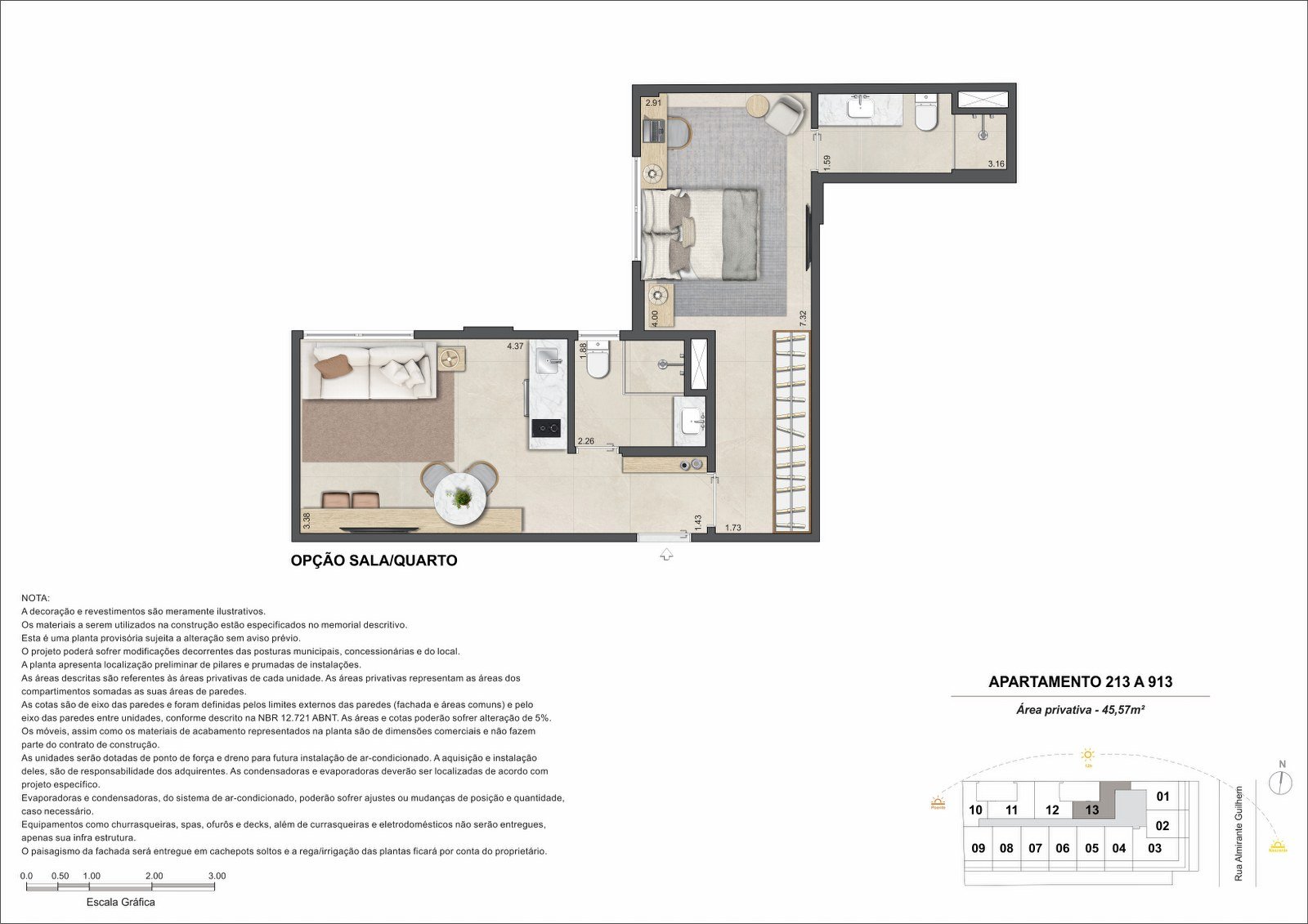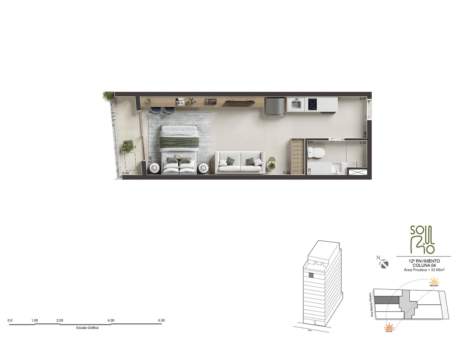 Studios – Variam entre 33 m² e 35 m², ideais para quem valoriza praticidade e integração de ambientes.