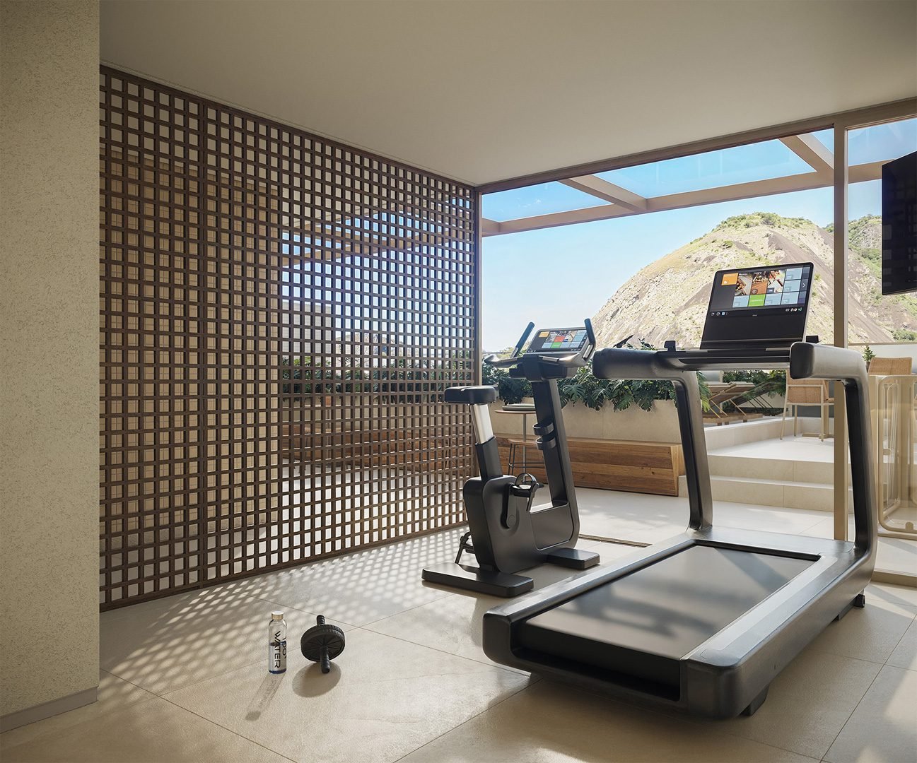 O rooftop do empreendimento é outro ponto alto. Ali, o morador terá acesso a espaços como a Sky Pool com vista para Copacabana, o elegante Lounge Gourmet e o Running Room, todos projetados para proporcionar momentos únicos de lazer e bem-estar. Além disso, o projeto inclui soluções modernas de conveniência, como lockers inteligentes, pet care, lavanderia compartilhada e bicicletário, que otimizam a rotina com praticidade.