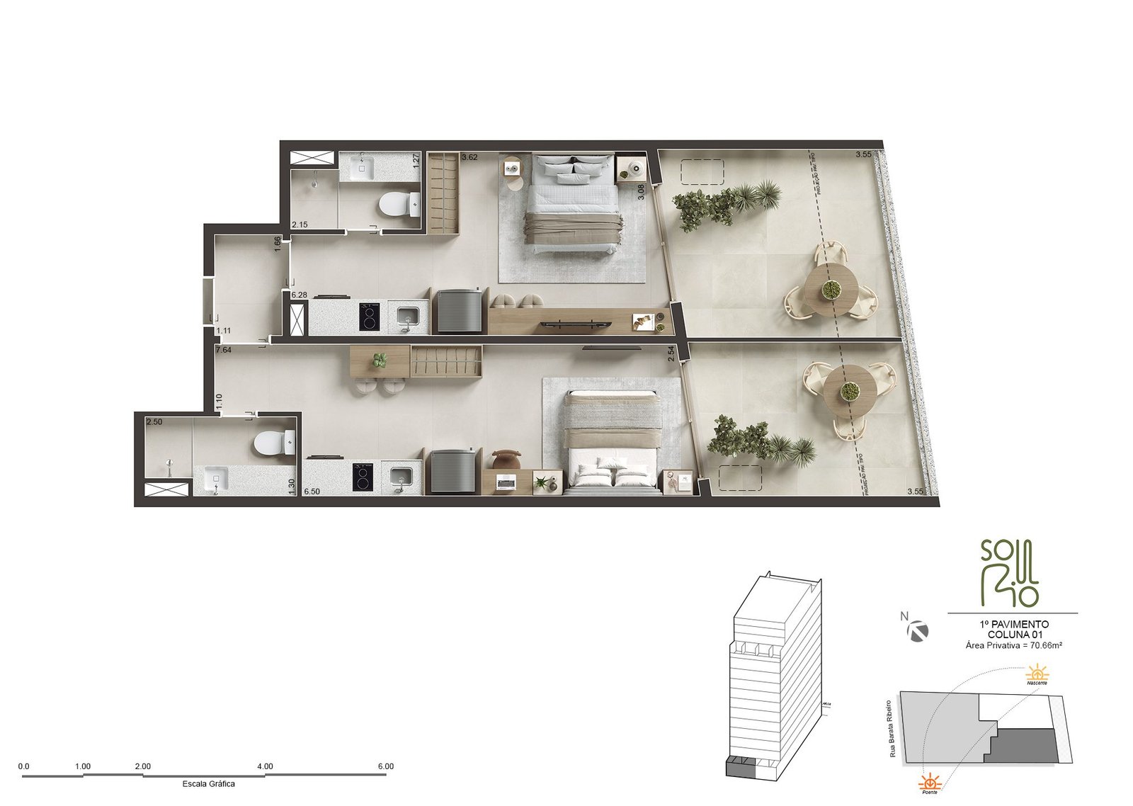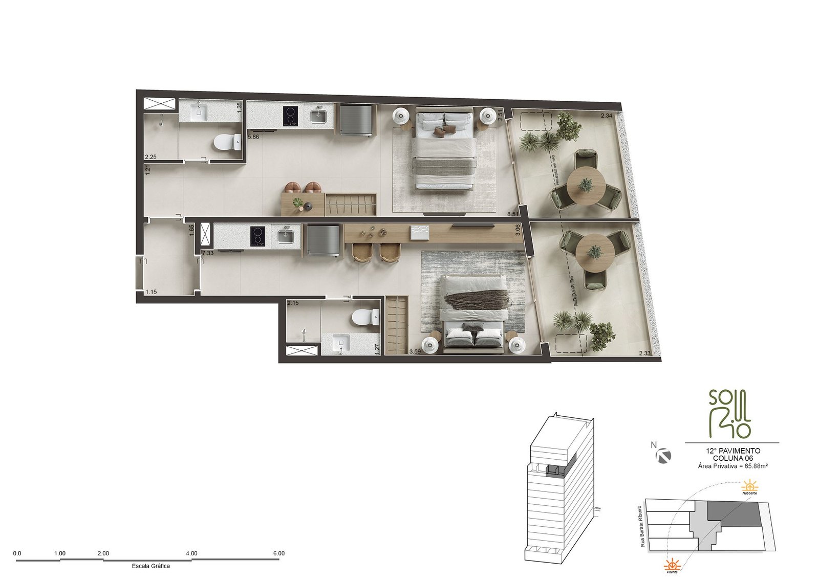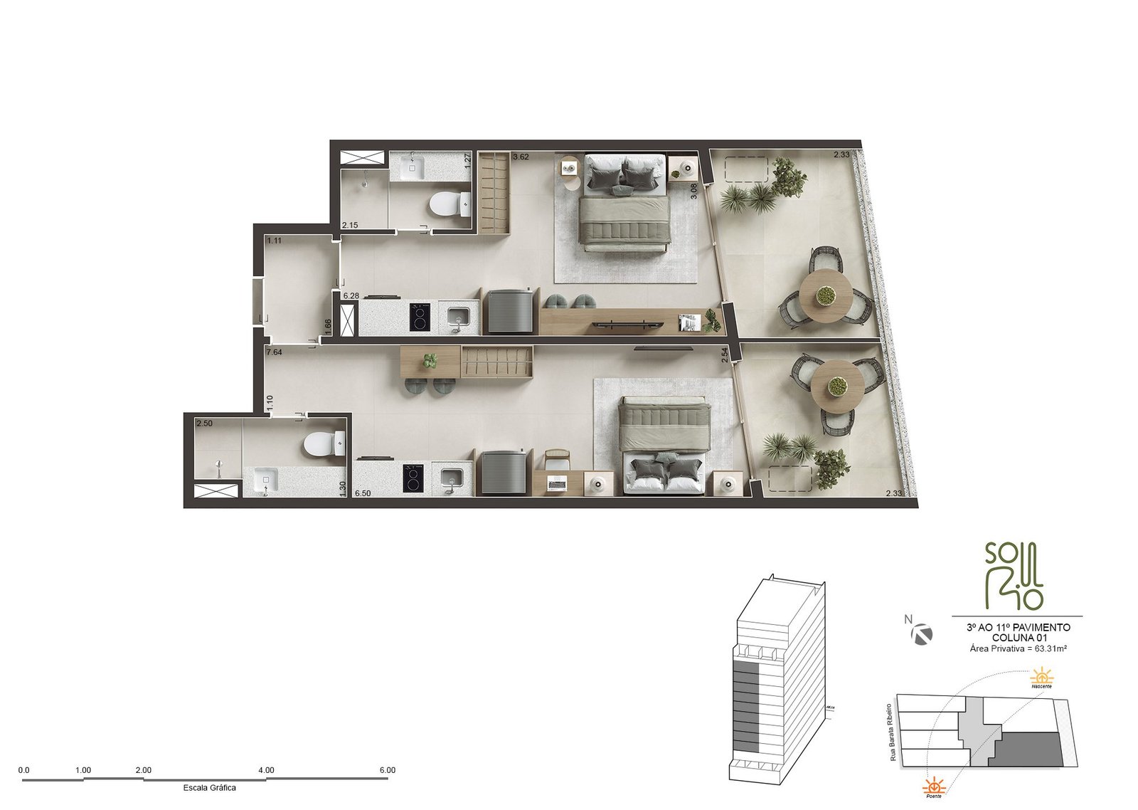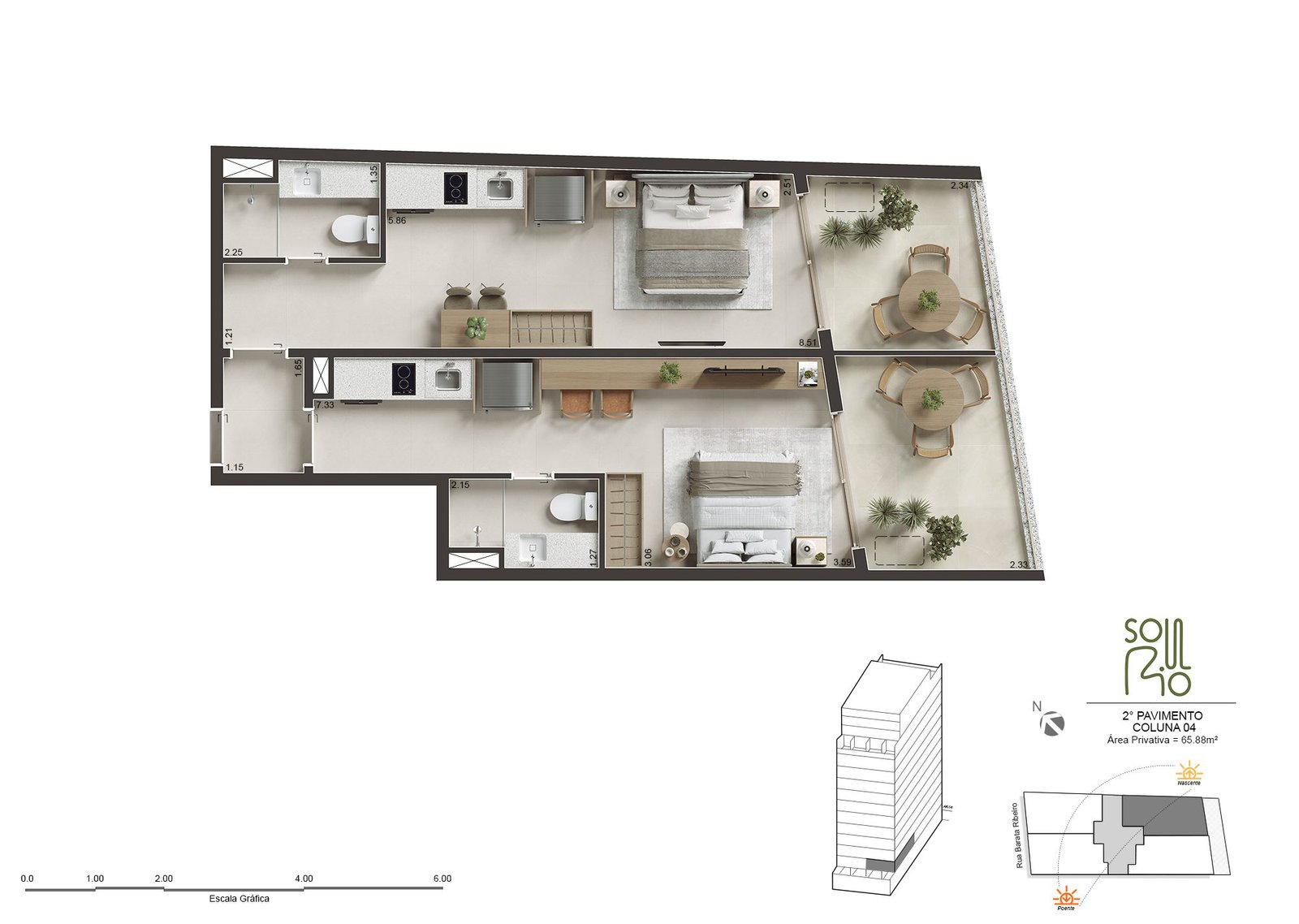 A diversidade é um dos maiores trunfos do Soul Rio Barata Ribeiro. Com 68 unidades residenciais distribuídas em diferentes tipologias, o projeto consegue atender desde quem procura um espaço compacto e funcional até perfis que desejam imóveis exclusivos para uso próprio ou para locação de temporada.