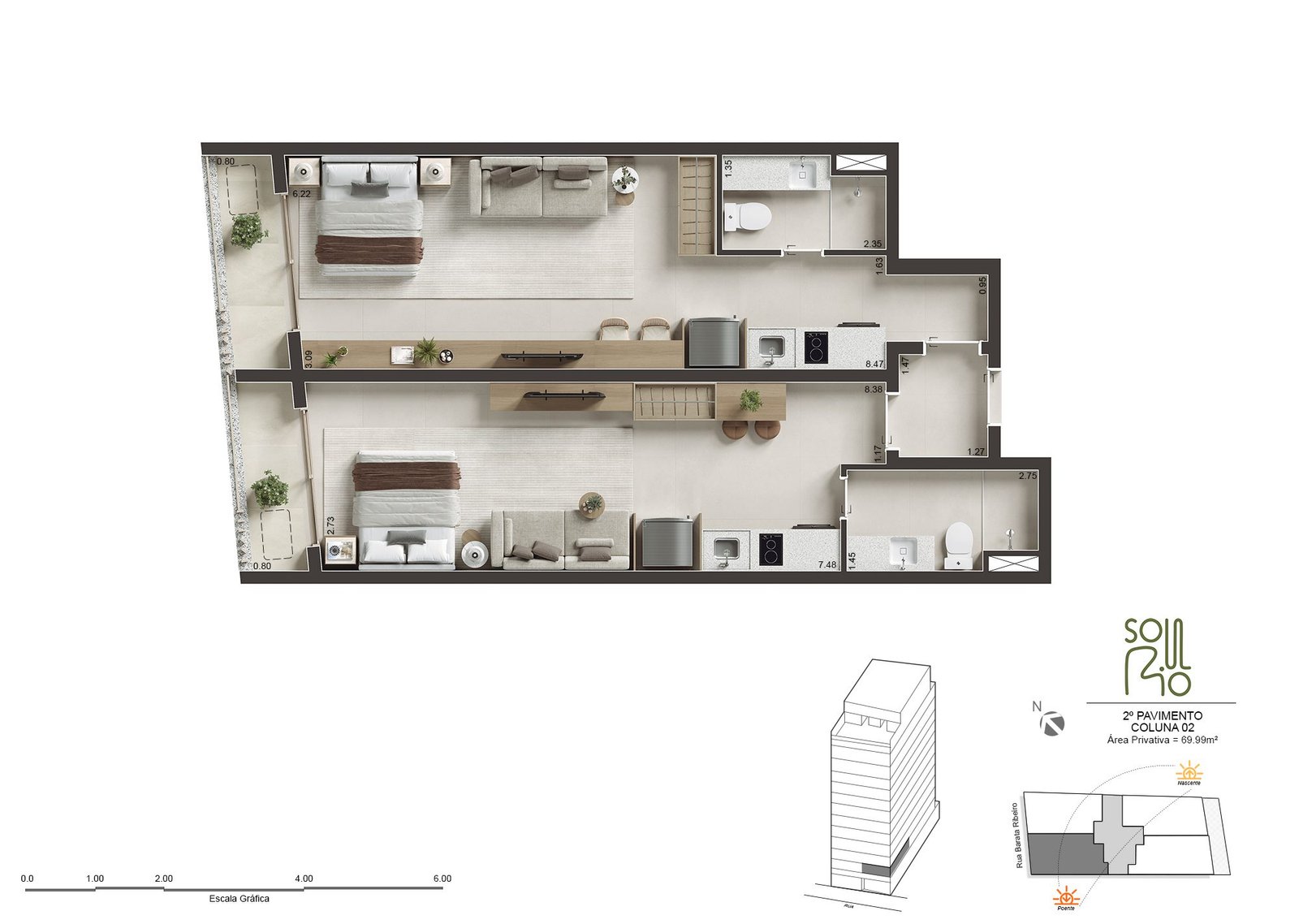 O Soul Rio Barata Ribeiro foi planejado em uma torre única, reforçando a ideia de exclusividade. O terreno de 342,39 m² e a área construída de 4.261,09 m² dão forma a um empreendimento moderno, que reúne praticidade e luxo em cada detalhe. Com 68 unidades distribuídas em diferentes tipologias, o projeto atende a variados estilos de vida sem perder sua identidade premium.